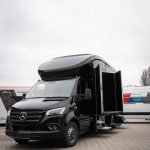 This unique van paladin has 4-6 full workstations, plus a kitchen area that makes catering possible during long work days.