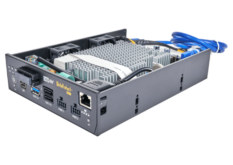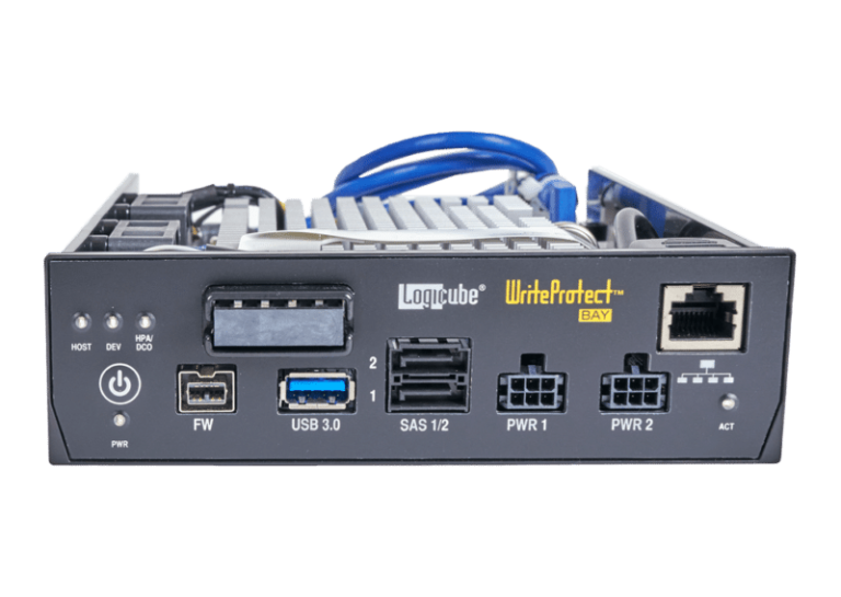 The WriteProtect™-BAY provides digital forensic professionals with fast, secure, read-only write-blocking of suspect hard drives. six interfaces, SAS/SATA/FireWire/PCIe/USB3/IDE are supported in a 5.25″, half-height design that fits into the drive bay of your forensic workstation. Logicube also offers a WriteProtect-PORTABLE or a WriteProtect-DESKTOP version of the product. Click for more information, WriteProtect-DESKTOP or WriteProtect-PORTABLE.